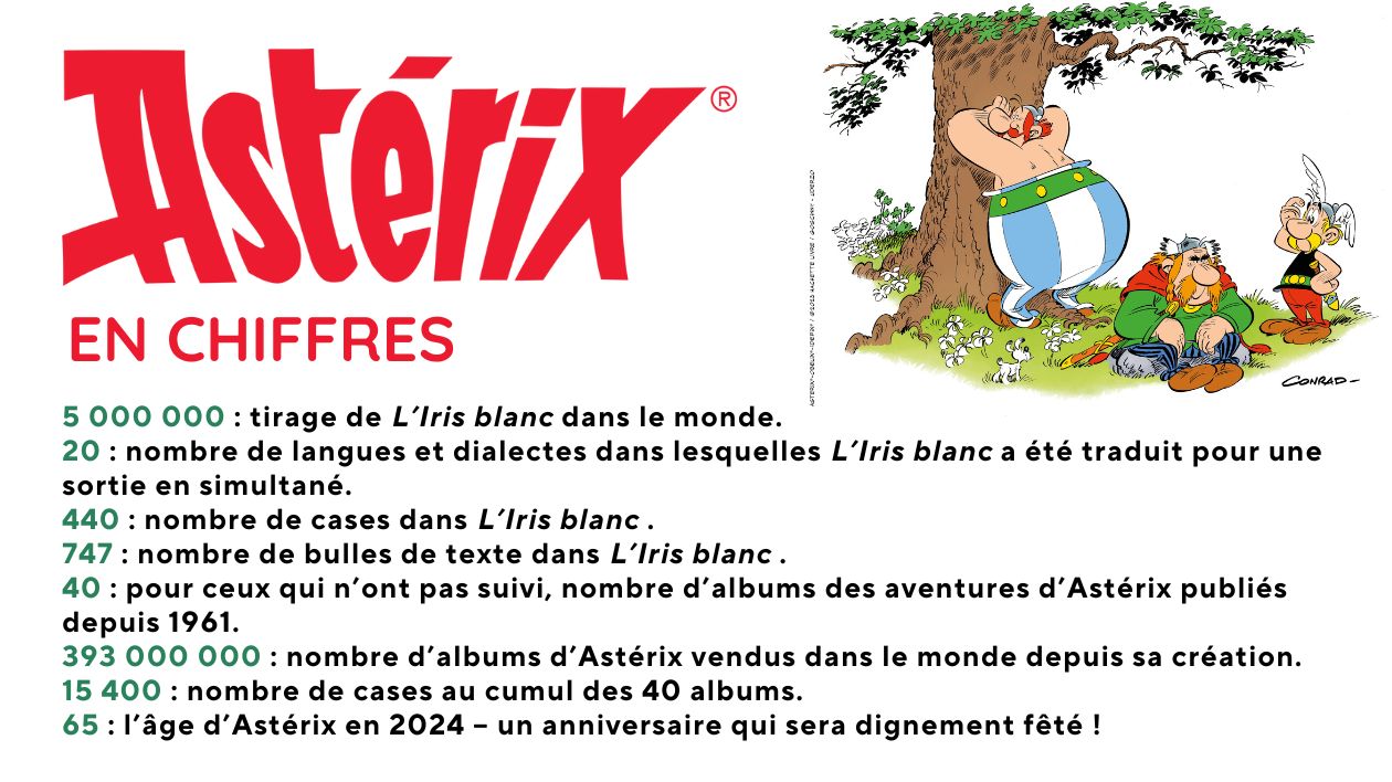 | L'Iris blanc est le nom d'une nouvelle école de pensée positive, venue de Rome qui commence à se propager dans les grandes villes, de Rome à Lutèce. César décide que cette méthode peut avoir un effet bénéfique sur les camps qui se trouvent autour du célèbre village gaulois. Mais les préceptes de cette école exercent aussi une influence sur les villageois qui croisent son chemin…